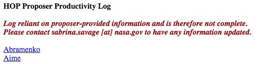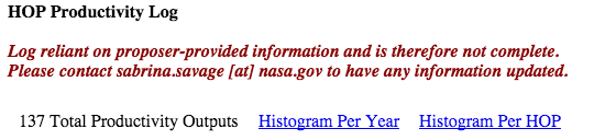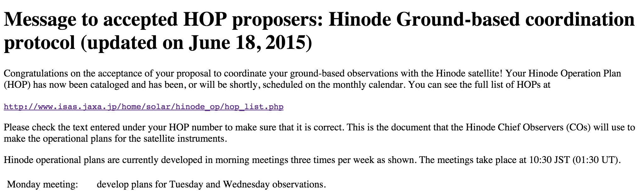 Old HOPs accepted before June 2008 (older than HOP71) are no longer valid. Proposers are requested to re-submit their revised HOP proposals to the SSCs, taking into account the limited telemetry