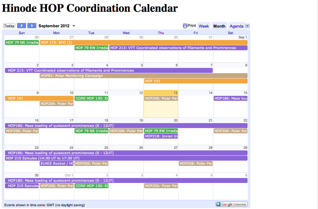In their last two monthly meetings, the Hinode Science Schedule