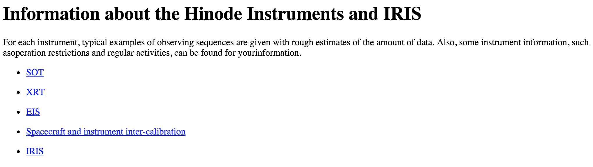 Specify which Hinode instruments are really required for the